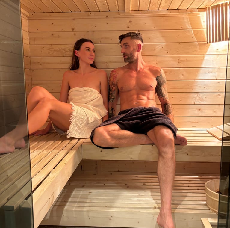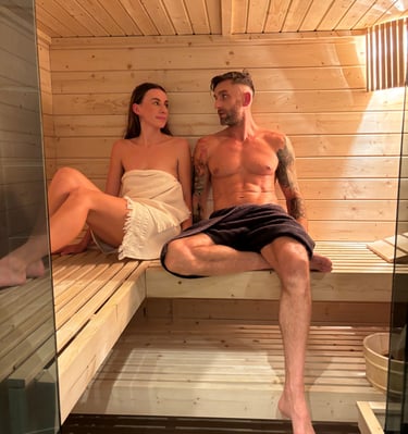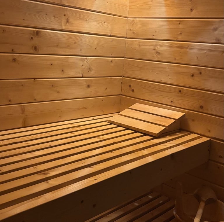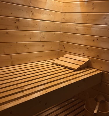 Nasza sucha sauna to miejsce stworzone z myślą o regeneracji – pomieści 3–4 osoby.